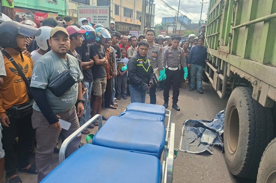 Namun sesampainya di dekat Masjid Baitul Mukmin, sepeda motor tersebut bertabrakan dengan truk Hino Tronton yang datang dari arah Simpang Acai menuju arah yang sama.