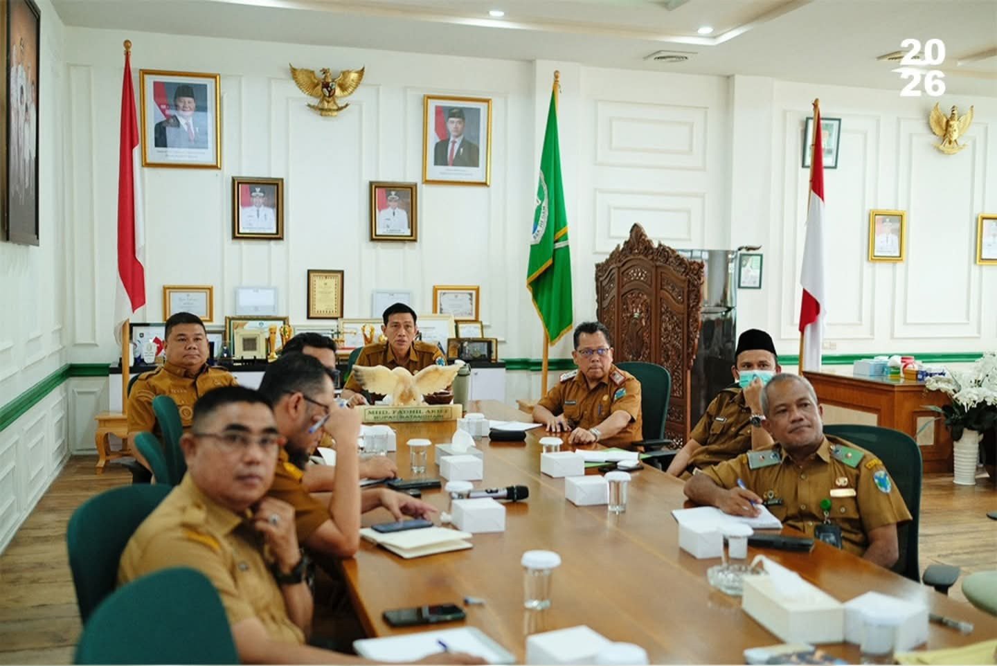 SWARAJAMBI.NET, BATANGHARI — Bupati Batang Hari Mhd Fadhil Arief bersama Sekretaris Daerah Batang Hari Mula P. Rambe, Asisten III Setda Batang Hari, serta para Kepala OPD di lingkungan Pemerintah Kabupaten Batang Hari mengikuti Zoom Meeting dalam rangka asistensi daerah terkait proyeksi kemampuan keuangan daerah yang belum memenuhi belanja minimum Tahun Anggaran (TA) 2026. Kegiatan tersebut berlangsung di Ruang Kerja Bupati Batang Hari pada Selasa (28/4/2026).